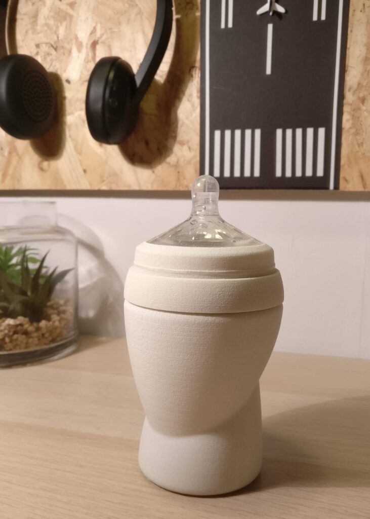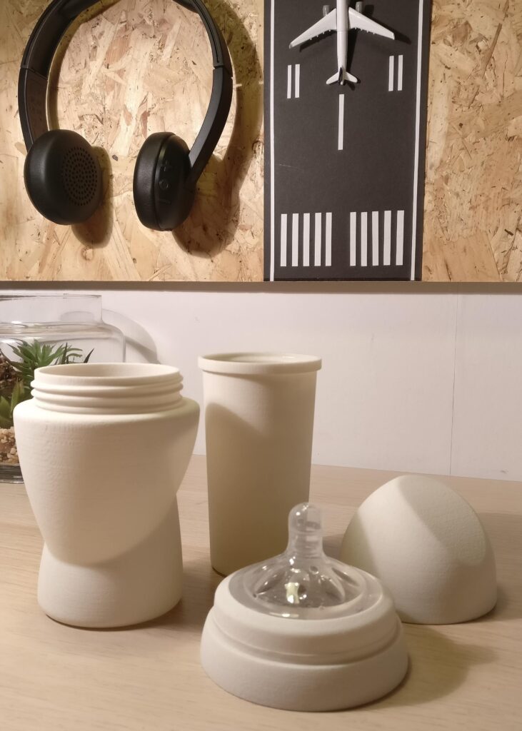 In this project, the task was to create a versatile feeding bottle that accommodates a standard pacifier. The product also features an insert with volume markers in litres & ounces. 3D print-ready CAD files were developed from initial free-hand sketches. After meticulously ensuring the components met fit, functionality and leakage standards, parts were 3D printed. Finally, the proof of concept (POF) and CAD files were delivered to a satisfied client.