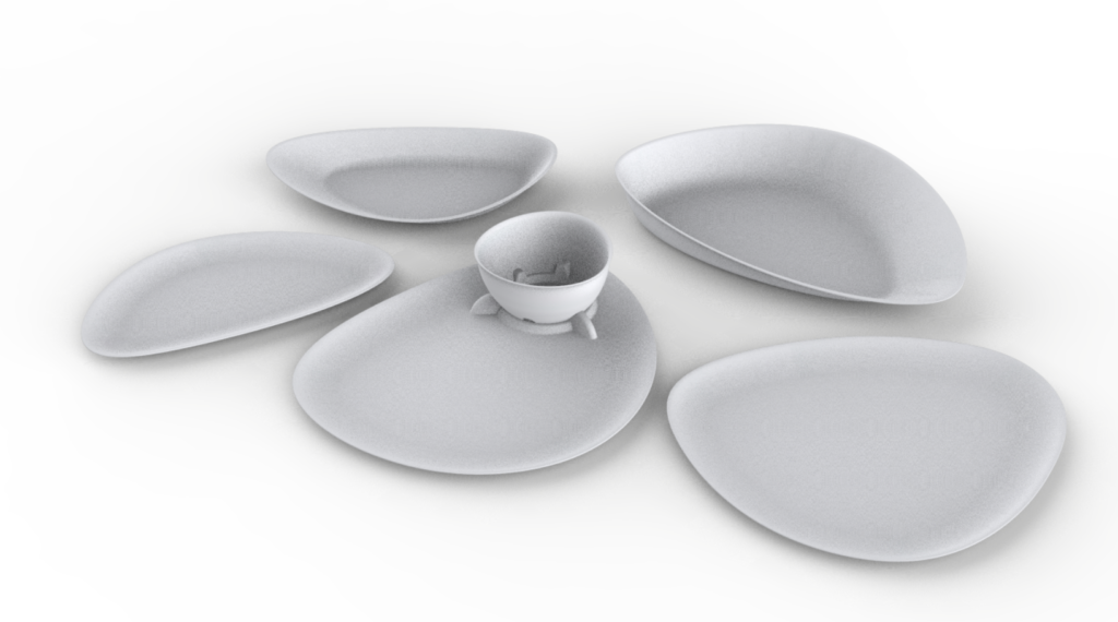 This innovative biodegradable take-away plate set designed to fit in a temperature-controlled carry case. Its ergonomic design allows for easy grip, while the versatile sauce pot can be switched for both hot and cold food options, making it perfect for various culinary needs.