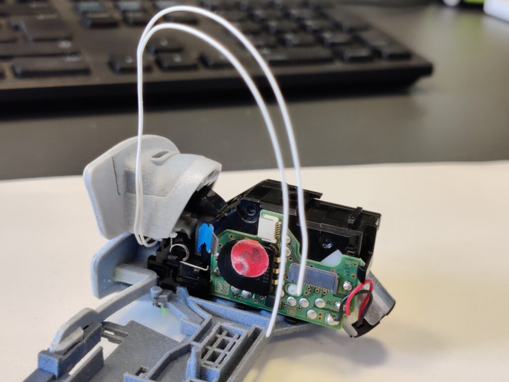 After discarding the initial approach of using metal for switching mechanism, the internal space within the trigger was optimised to maximize usable volume. This allowed to develop a concept using plastic switches where geometry of the switch played a crucial role in taking load associated with game play.